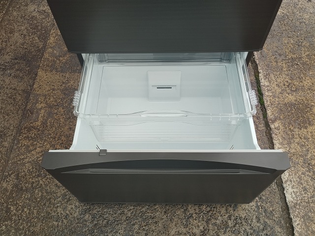 2017年式、517Lの冷蔵庫です。正面上部と側面に移動に伴う微細な小傷がありますが、住宅展示場にて備品とされていた品物なので、保護テープ等も張ったままです。動作はチェック済みです。