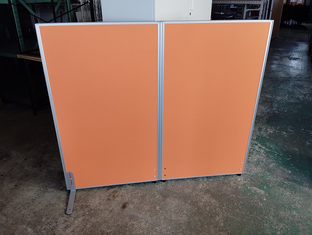 オフィスコム オレンジ布張りパーテーション2枚セット H1200 W1400『中古美品』