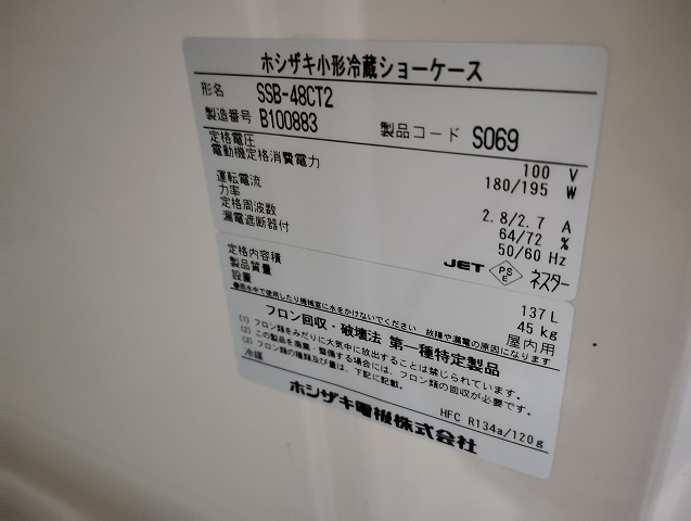 ホシザキ SSB-48CT2 冷蔵ショーケース 137L 100V『中古良品』2012年式