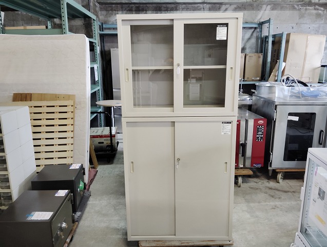 幅880 高さ1790 奥行400 上ガラス引き違い下スチール引違扉書庫です。目立つ傷や汚れの無い良品です!鍵は上1本下2本付きます。 ※大型商品につき配達は自社便配達のみ承ります。又、荷受け時にお手伝いが必要です。 ※この商品は新潟県外発送致しません。