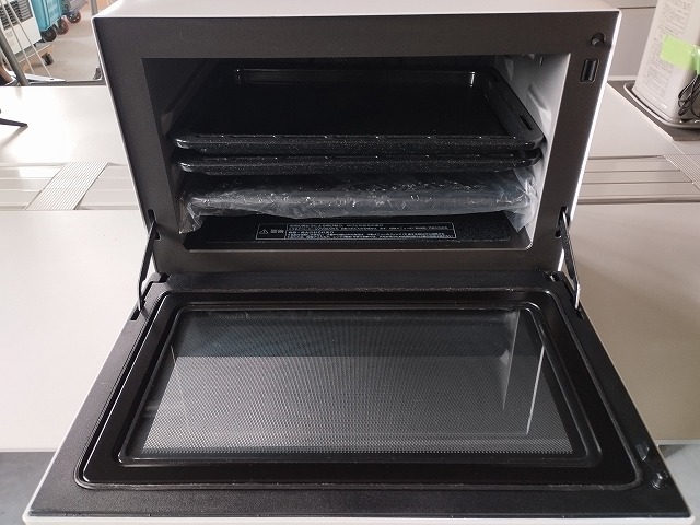 2017年式のオーブンレンジです!上部右角に凹み、スレ傷、庫内もやや使用感があります。角皿2枚、グリル皿1枚が付きます。説明書はありません。