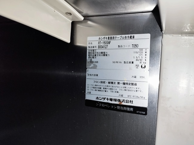 ホシザキ RT-150SNF 2扉コールドテーブル 冷蔵庫 2012年式『中古、やや使用感あり』100V