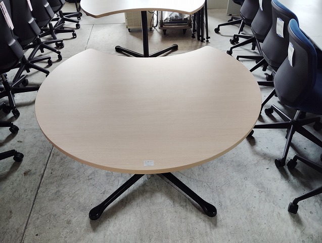 オカムラ アクティアフェロー ムーン型テーブル キャスター付き W1200x1100 H720『中古美品』複数入荷!