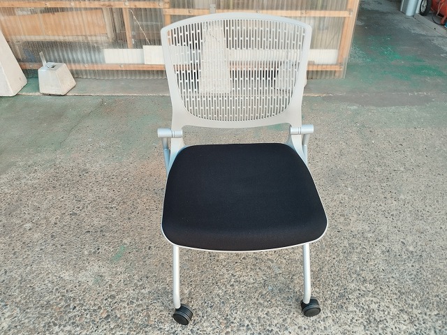 幅540 座面高さ450 背もたれ高さ850 奥行570 同程度で6脚入荷しました!脚キャスターで背面樹脂メッシュのイスです。座面を折り畳む事で平行に収納出来ます。目立つ傷や汚れは無く、概ね程度は良好です!新品時定価67,608円の品です! ※大型商品につき配達は自社便配達のみ承ります。又、荷受け時にお手伝いが必要です。 ※新潟県内以外配達致しません。