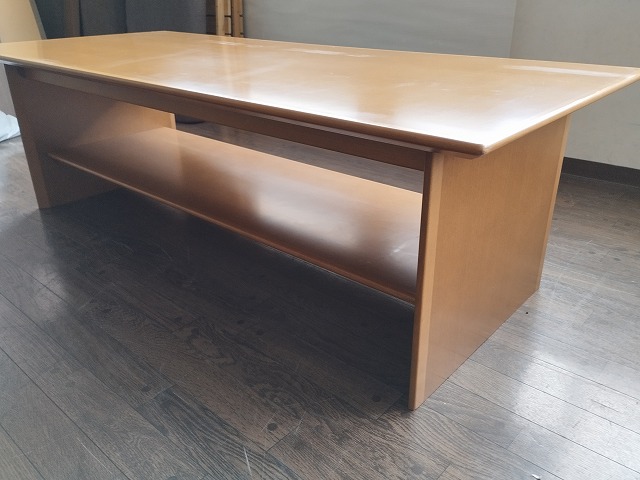 幅1500 高さ450 奥行645 コクヨの天然木のローテーブルです。天板に薄いスレ傷がありますが、その他目立つ傷や汚れのない良品です。新品時約125000円の品です! ※大型商品につき配達は自社便配達のみ承ります。 ※新潟県内以外配達致しません。