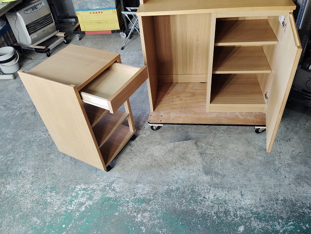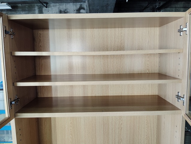 W900 H800 D400 無印良品のサイドボードです。正面はタモ材で側面棚板等は化粧板です。正面左側下部はキャスター付きワゴンです。棚板に撓り、棚板、側面、天井にテープ剥がし跡があります。その他目立つ傷や汚れの無い良品です。 ※大型商品につき配達は自社便配達のみ承ります。又、荷受け時にお手伝いが必要です。 ※この商品は新潟県外発送致しません。