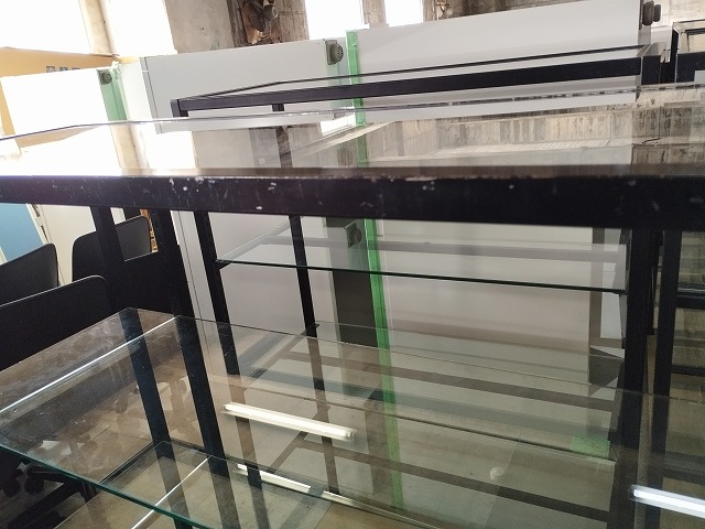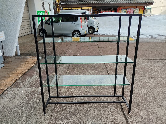 幅955 高さ1500 奥行405 ガラス3段ディスプレイシェルフです。ガラスの棚板は高さ調節が可能です。フレームに使用に伴う小傷がありますが、その他目立つ傷や汚れのない良品です。 ※大型商品につき配達は自社便配達のみ承ります。又、荷受け時にお手伝いが必要です。