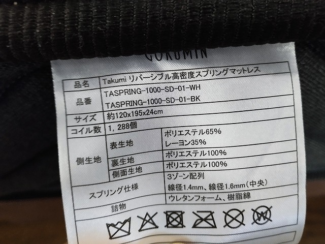 幅1230 高さ490 奥行2010 木製ベッドフレームとのセットのベッドです。スプリング数が1200超えと一般的マットレスの3~4倍ある高密度スプリングのマットレスです!目立つ傷や汚れの無い美品です! ※大型商品につき配達は自社便配達のみ承ります。又、荷受け時にお手伝いが必要です。 ※新潟県外に配達ご希望の場合、必ず事前にお問い合わせ下さい。