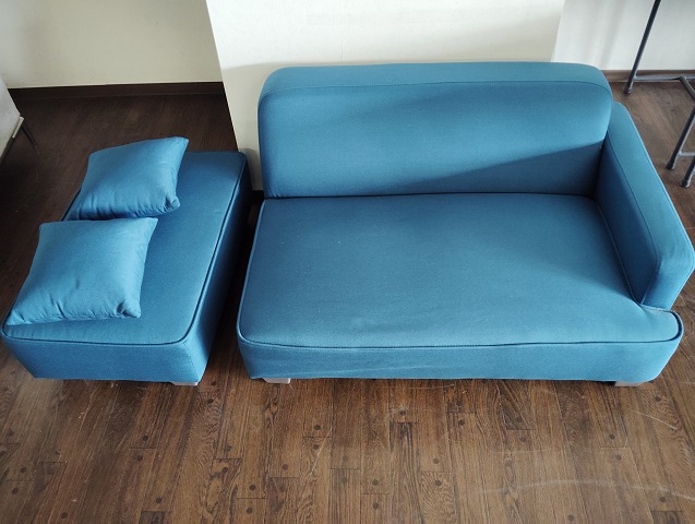 2人掛けの布張りローソファーです。特に目立つ傷や汚れの無い良品です! イスサイズ:幅1100 座面高280 背高590 奥行750 オットマンサイズ:幅510 座面高280 奥行750 ※大型商品につき配達は自社便配達のみ承ります。又、荷受け時にお手伝いが必要です。 ※新潟県外に配達ご希望の場合、必ず事前にお問い合わせ下さい。