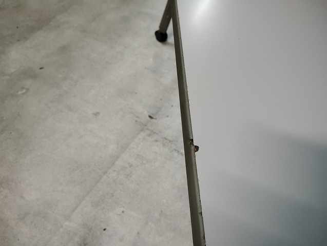 キャスター付き幕板付き平行スタックテーブルです。天板縁に小傷あります。