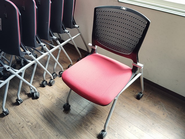 オカムラ グラータ ネスティングチェア 赤布張り4脚セット『中古良品』