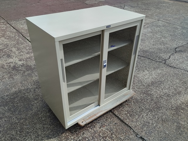 ウチダ 3段引違扉書庫《中古良品》W800※カギ無