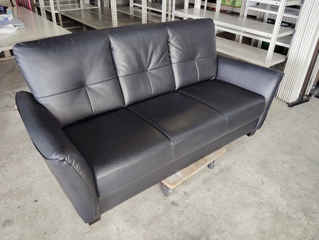 ニトリ 黒合皮張り 3人掛けソファー W1860『中古良品』