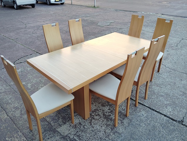 伸張式ダイニングテーブルと椅子7点のダイニングセット『中古良品』