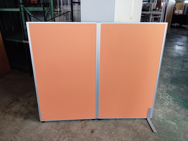 オフィスコム オレンジ布張りパーテーション2枚セット H1200 W1400『中古美品』