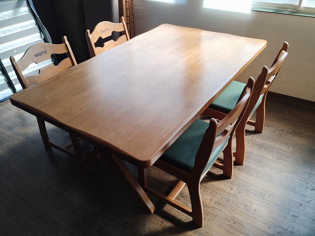 カリモク ルスティック テーブルと椅子4点のダイニングセット『中古良品、小傷あり』