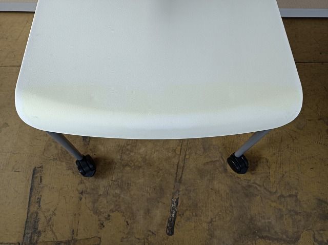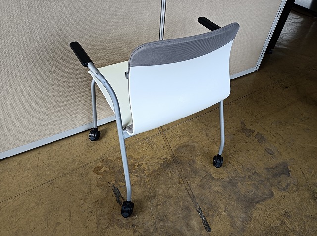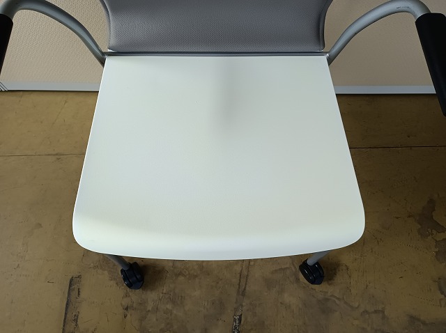 背もたれグレー布、座面白プラのコクヨのキャスター付きスタックチェアです!フレームに小傷、座面のプラに薄い色あせがあります。 ※大型商品につき配達は自社便配達のみ承ります。 ※この商品は新潟県外発送致しません。