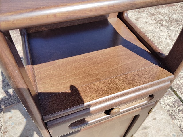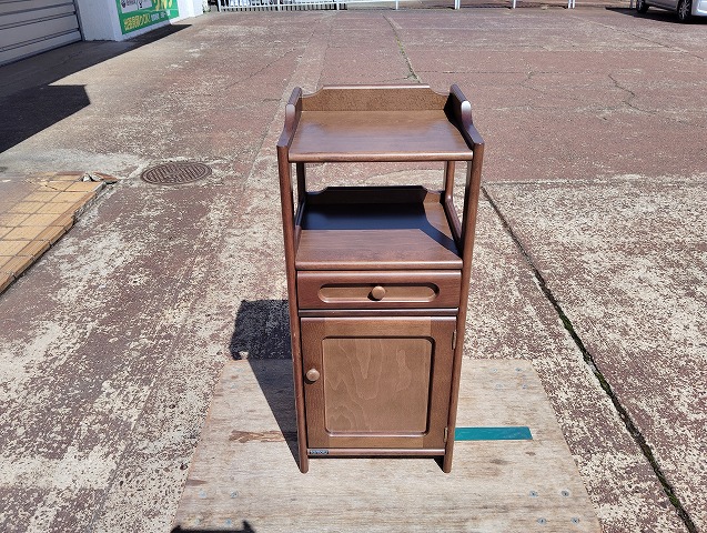 幅348 高さ820 奥行320 カリモクの木製電話台です。正面左端にスレ傷がありますが、その他特に目立つ傷や汚れのない良品です! ※大型商品につき配達は自社便配達のみ承ります。 ※新潟県内以外配達致しません。