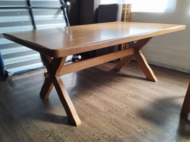 テーブルとベンチ椅子4点のダイニングセットです。天板に使用に伴う小傷、イス一脚に傷直し箇所があります。その他目立つ傷や汚れの無い良品です。新品時約250,000円のセットです!