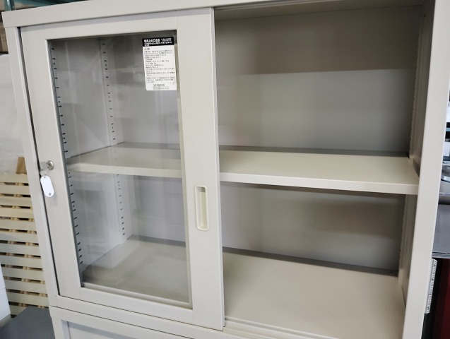 幅880 高さ1790 奥行400 上ガラス引き違い下スチール引違扉書庫です。目立つ傷や汚れの無い良品です!鍵は上1本下2本付きます。 ※大型商品につき配達は自社便配達のみ承ります。又、荷受け時にお手伝いが必要です。 ※この商品は新潟県外発送致しません。
