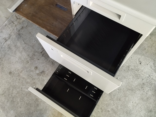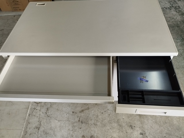 幅1200 高さ700 奥行700 天板奥の穴カバーが欠品、引き出し中段の仕切り板がありません。その他目立つ傷や汚れの無い美品です。鍵は2本付きます。新品時55,600円の品です! ※大型商品につき配達は自社便配達のみ承ります。又、荷受け時にお手伝いが必要です。 ※この商品は新潟県外発送致しません。