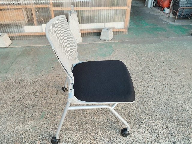 幅540 座面高さ450 背もたれ高さ850 奥行570 同程度で6脚入荷しました!脚キャスターで背面樹脂メッシュのイスです。座面を折り畳む事で平行に収納出来ます。目立つ傷や汚れは無く、概ね程度は良好です!新品時定価67,608円の品です! ※大型商品につき配達は自社便配達のみ承ります。又、荷受け時にお手伝いが必要です。 ※新潟県内以外配達致しません。