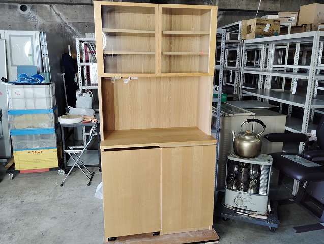W900 H800 D400 無印良品のサイドボードです。正面はタモ材で側面棚板等は化粧板です。正面左側下部はキャスター付きワゴンです。棚板に撓り、棚板、側面、天井にテープ剥がし跡があります。その他目立つ傷や汚れの無い良品です。 ※大型商品につき配達は自社便配達のみ承ります。又、荷受け時にお手伝いが必要です。 ※この商品は新潟県外発送致しません。