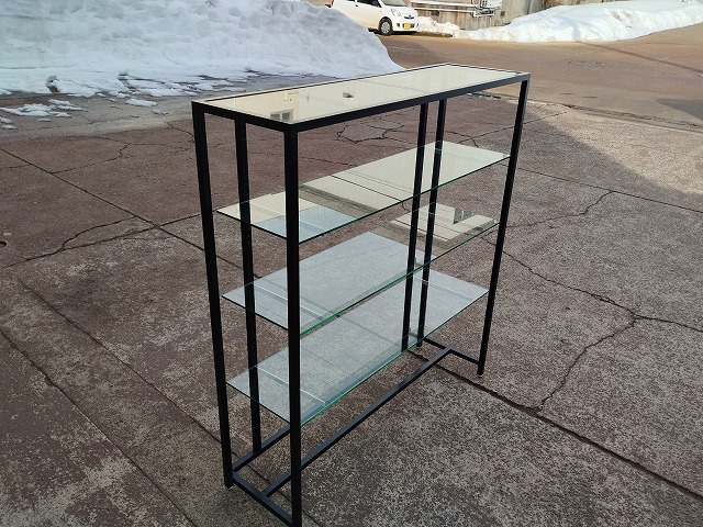 幅955 高さ1500 奥行405 ガラス3段ディスプレイシェルフです。ガラスの棚板は高さ調節が可能です。フレームに使用に伴う小傷がありますが、その他目立つ傷や汚れのない良品です。 ※大型商品につき配達は自社便配達のみ承ります。又、荷受け時にお手伝いが必要です。