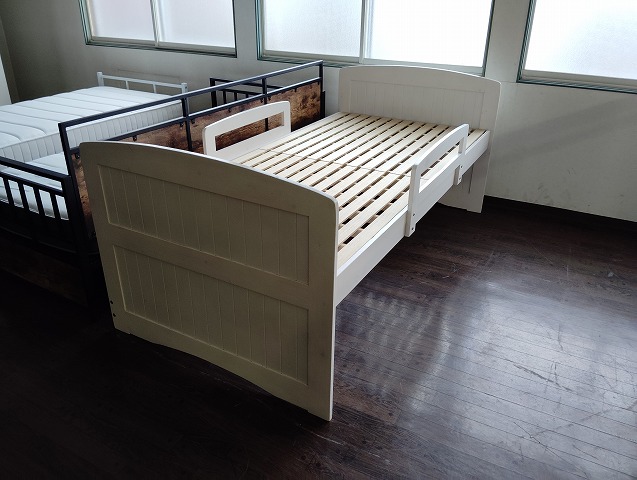 上段:幅1050 床高さ550 奥行2110 下段:幅1020 床高さ150 奥行1995 木製ベッドフレーム2台のセットです。それぞれ独立したベッドとしても利用可能です。下段はキャスターが付いています。小傷が多々あります。 ※大型商品につき配達は自社便配達のみ承ります。又、荷受け時にお手伝いが必要です。 ※新潟県外に配達ご希望の場合、必ず事前にお問い合わせ下さい。