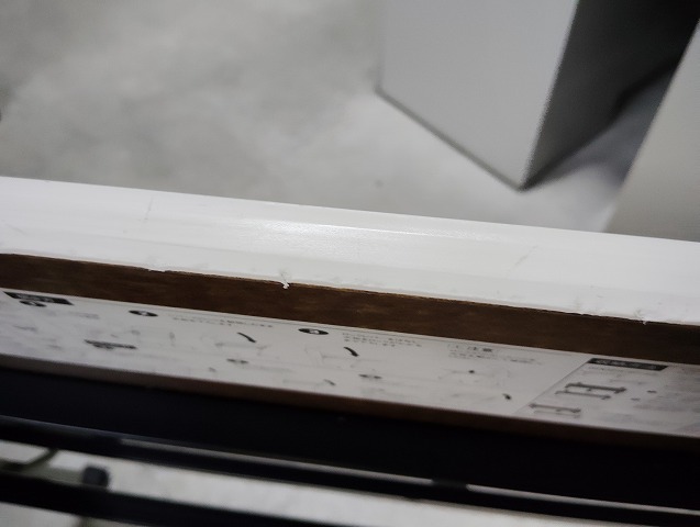 キャスター付き幕板付き平行スタックテーブルです。天板の縁ゴムに傷がある部分がありますが、その他目立つ傷や汚れの無い良品です!