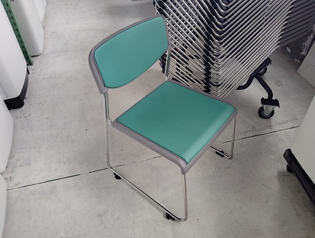 イトーキ KLT-210DP スタックチェア 緑ビニール張り『中古、やや使用感あり』複数入荷!