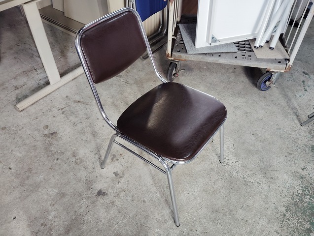 コクヨ スタックチェア 4脚セット 座面こげ茶ビニール『中古良品』